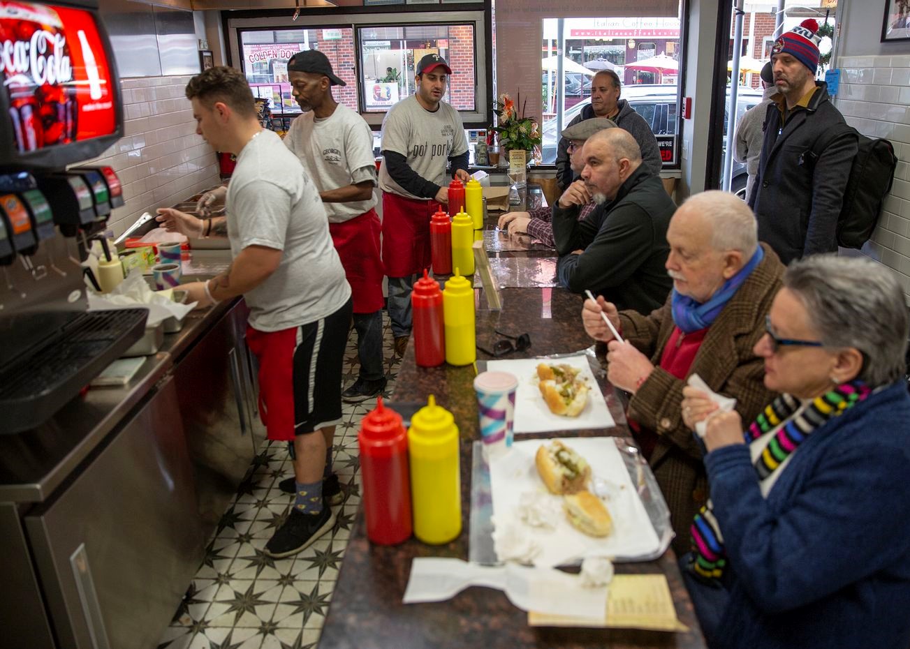 There was only ever one George at the sandwich shop. But everyone who came after him at the storefront on Ninth Street has inherited his name, too. The original George, who came to America from Greece in 1908, slung tripe and veal and barbecued beef tongue sandwiches out of a butcher basement until 1936, when he opened George's Sandwich Shop. He painted his prices on cardboard signs, along with his slogans:
