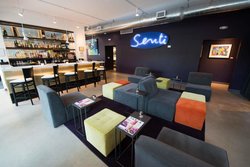 He's right. Senti is one of those fresh finds. Opened this past winter, Senti is refreshing. Set in a sea of reclaimed wood and Edison bulbs, Senti is decidedly not gastro-pub-esque. The stark white of some of the walls, tablecloths and long banquettes is sleek.