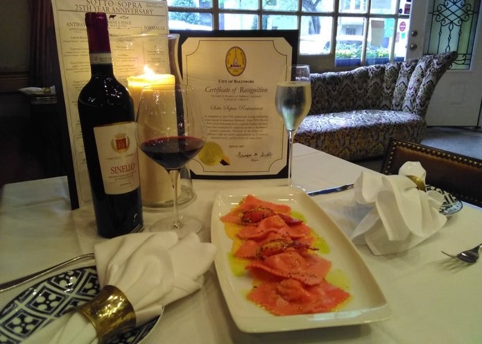 Sotto Sopra the Northern Italian Restaurant (www.sottosopra.us) located on historic Charles Street in downtown-Baltimore received the Mayor’s Certificate for Recognition for its 25th Anniversary.