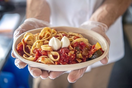 There’s a saying in journalism that one should never bury the lede, so I’ll skip the pleasantries and get right to it: I’m eating pasta tossed with cantaloupe that was made in a purple and red trolley. No hallucinogens were involved in the creation of that sentence and superficially, at least, it makes my inner-Italian food purist’s head want to ex...