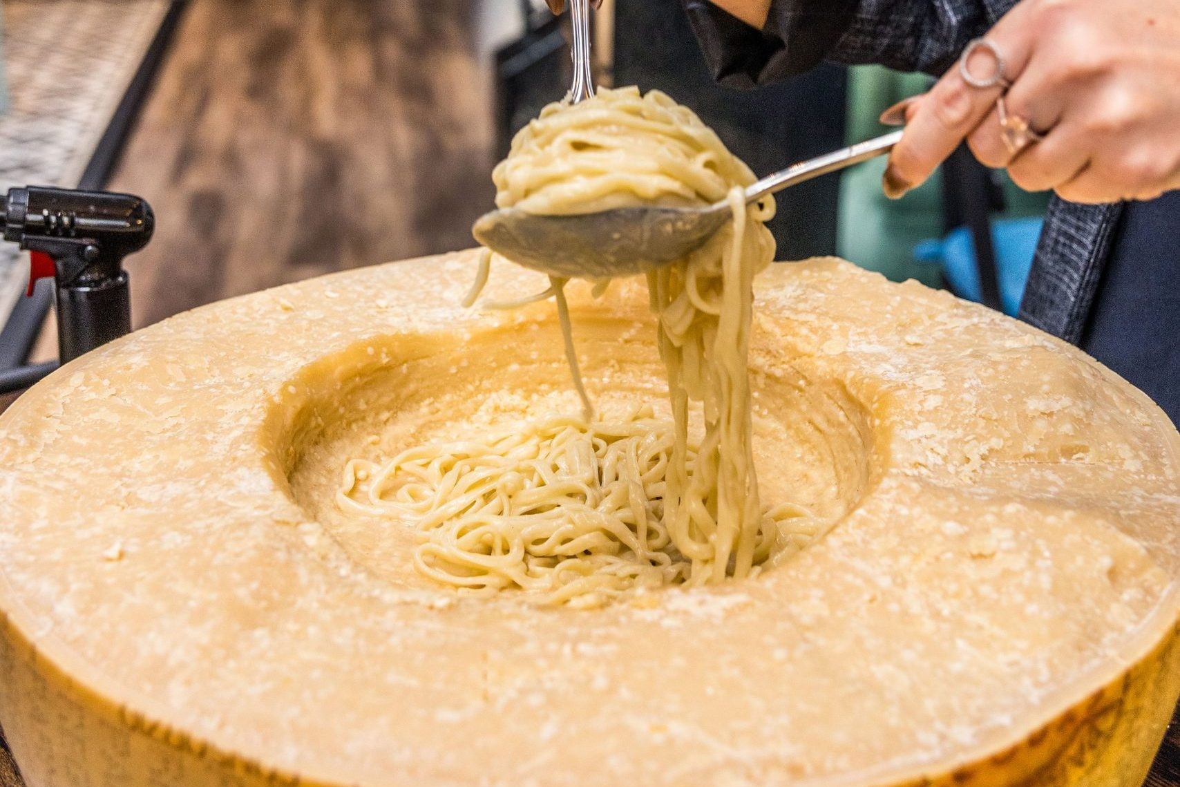 The front door has been painted bright blue, and lemon trees grow out of the top of the two-story wine rack. Neon hands touch above the entrance to the vault in a contemporary nod to Italy’s famed Sistine Chapel. But that’s it. You won’t hear Sinatra or see countless black-and-white photos of Rome or Little Italy. The food is transportive enough.