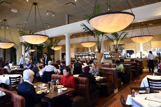 Comfort and variety are the keys to this Roman villa-themed venture. The atmosphere is cheerful, with brick archways and tall plantings peppering the open, light-filled dining room. Seating is a mix of open-sided booths and tables, with the ability to accommodate groups of up to 25 people, or gatherings of up to 50 in the adjacent banquet room.
