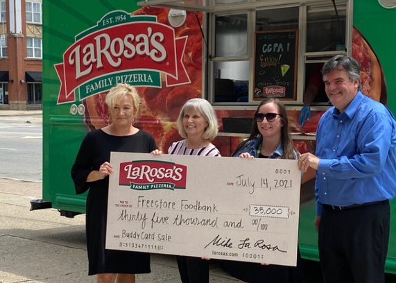“The Cincinnati community stepped up in a big way. We are incredibly grateful to everyone who bought Buddy Cards to help us fill the Freestore Foodbank school pantries making sure that local kids and their families have enough to eat,” said Michael LaRosa, CEO, LaRosa’s Inc.