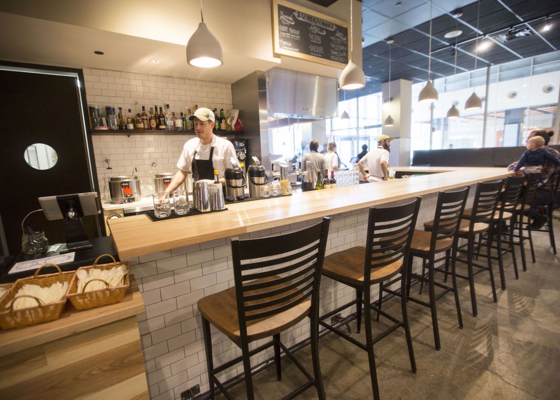 Of the two owners, James Juedes, 30, recently a sommelier at L’Etoile, is outgoing and chatty. Juedes runs the register during the busy lunch rush, taking orders as Motown and soul music play on the sound system.