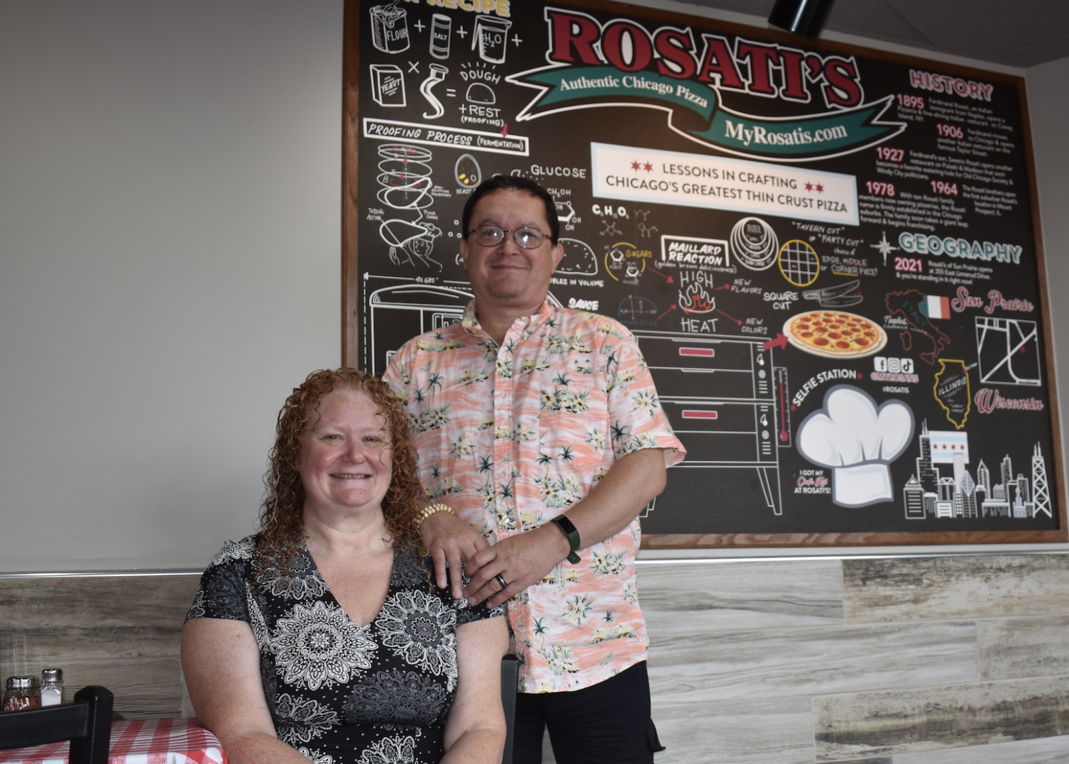 Rosati’s Pizza’s route to Sun Prairie started in Italy, made a home in Chicago, and then took a right turn to Wisconsin. The husband and wife team of Jim and Brandy Davis will open the Sun Prairie Rosati’s Pizza franchise this month. Customers will soon get a peek into the Italian roots of the modern restaurant with photo murals of the Rosati family, red and white checked tablecloths on the table, and a menu of Italian beef sandwiches, antipasti, tiramisu, and the signature pizzas.