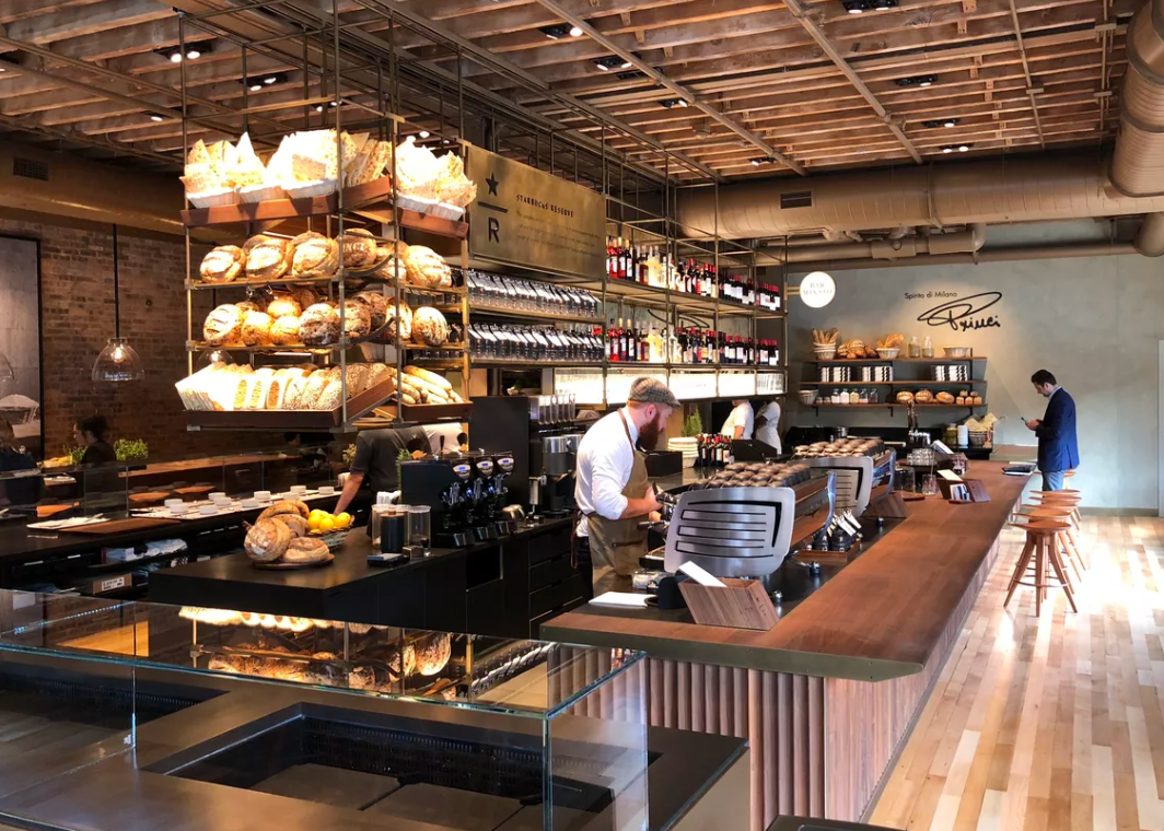 Tuesday is opening day at 1000 W. Randolph Street. Princi will offer table service in addition to the normal Starbucks experiences. It’ll also have wine and beer at Bar Mixato, creating the type of atmosphere piloted by Starbucks when it launched its Starbucks Evenings program. Baristas will pour upscale and pricier Starbucks Reserve coffees.