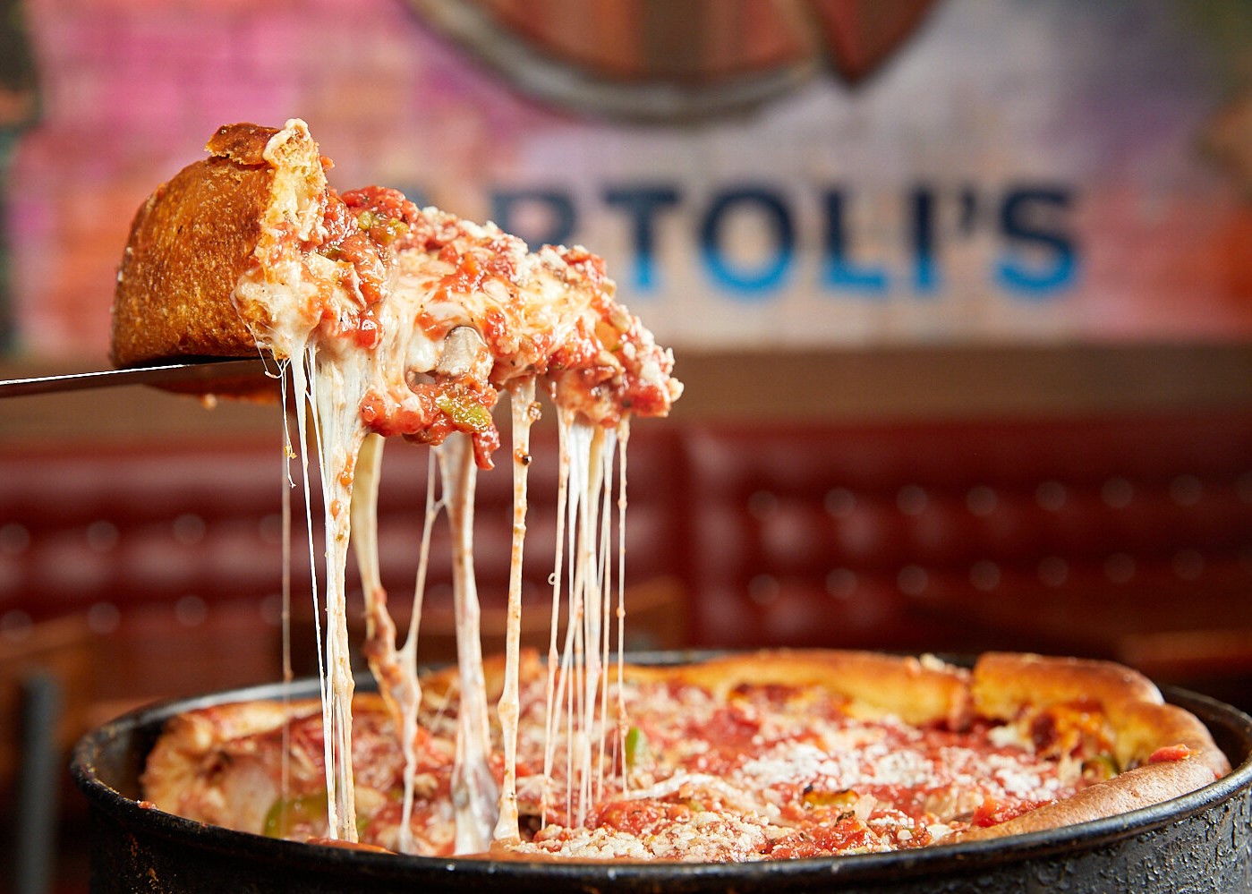 Bartolini’s has been serving up fresh pies, Italian beef, and homemade meatballs since 1995 and has even been featured on The Travel channel among other local Chicagoland shows.