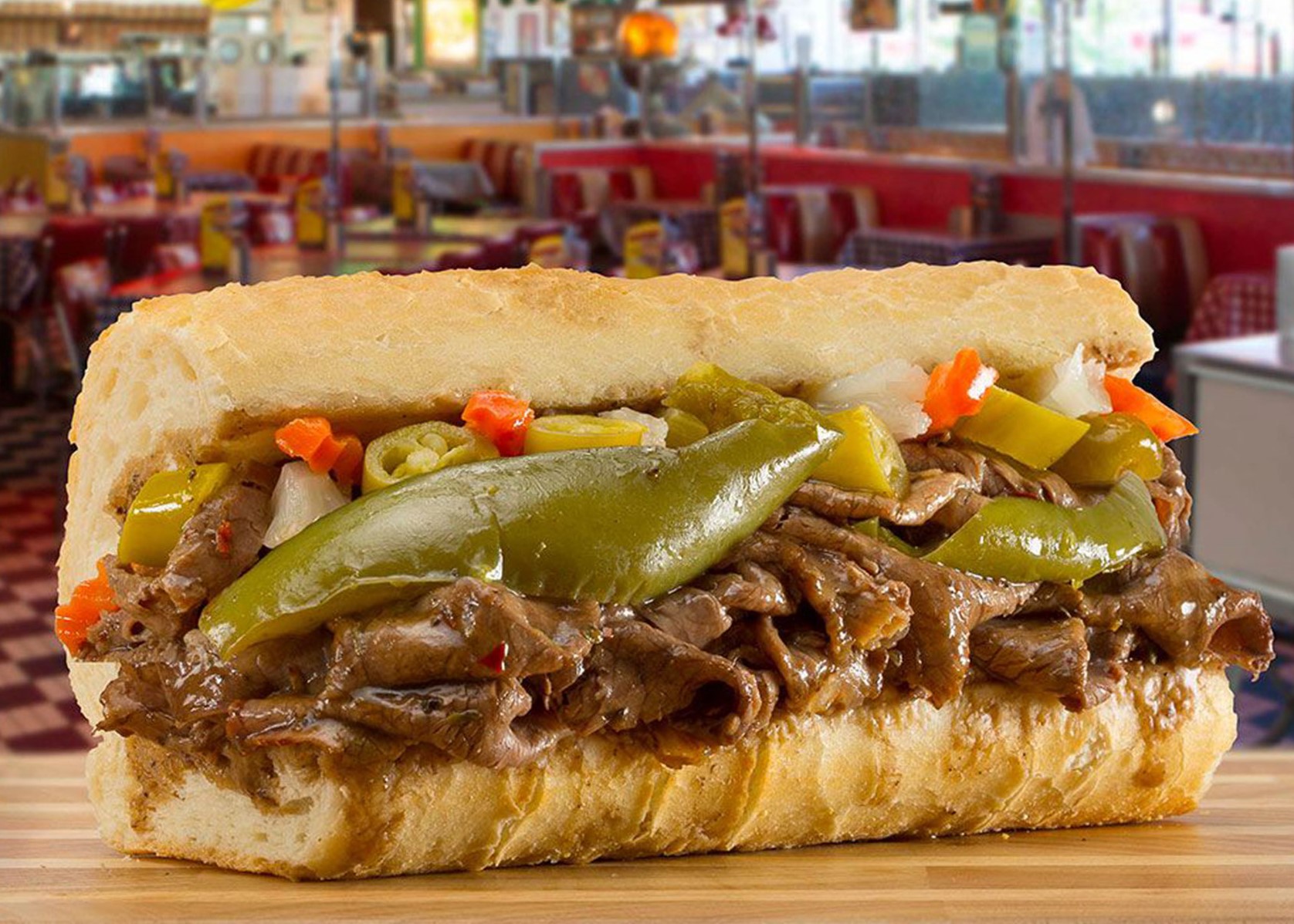 Italian beef dates back to the 1930s and consists of thin slices of seasoned roast beef served on a French toll. Sometimes, the sandwich is dipped in au jus or topped off with Chicago-style giardiniera, mozzarella, or Italian sweet peppers.