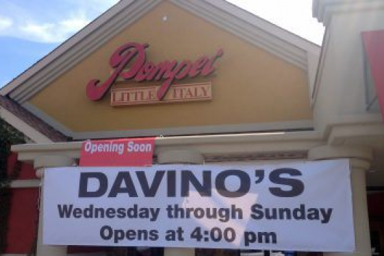 by Ben Feldheim Pompei Little Italy in Orland Park will reopen in about a week with a new name and new hours. Davino's Restaurant will be the new name at 8801 W. 143rd Street with a tentative reopening date of Wednesday, Sept. 12. The menu of Italian staples, including house made pastas, pizzas, salads, sandwiches and pizza strude...