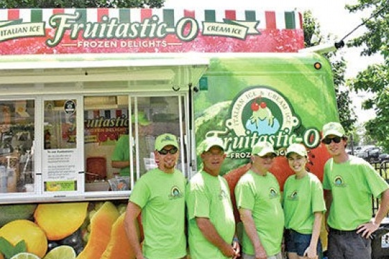 Fruitastic-O, which offers Italian ice and “cream ice,” held a grand opening on July 1 at Mt. Greenwood Park, 3721 W. 111th St., where it will be stationed until October. Run by owner Mike Small (second from left), of Mt. Greenwood, and his family, Fruitastic-O offers six flavors of Italian ice, including blueberry, lemon, mango and sour cherry. Th...