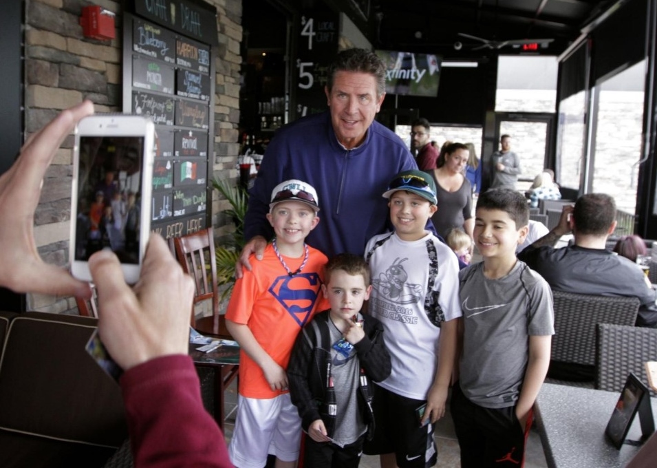 Crowds of fans lined up to shake not just the hand of NFL Hall of Famer Dan Marino, but also that of his business partner, restaurateur Anthony Bruno at the grand opening of Anthony’s Coal Fired Pizza at Garden City on Thursday.