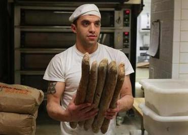 People are finding it. Once inside, you head down a flight of stairs and see one or two bakers working in a small white-tiled room. They're rolling dough, pulling bread from the ovens, or stacking loaves on a large rack. Head baker and manager Ben Tock, 23, is making 1,300 loaves "on a good day," he says. The Johnson and Wales grad worked at Au Soleil, the catering arm of L'Espalier and Sel de la Terre.