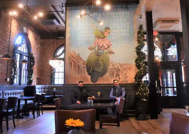 The light-washed brick walls now have hand-painted murals incorporated into them, and the building's original copper windows glimmer when struck by sunbeams. Developer Mark McNabb's meticulously restored downtown building reopens this month as Toscana Italian Chophouse and Wine Bar, a new venture from Tuscan Brands' Joe Faro, who just steps away, opened Tuscan Market last year.