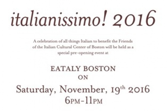Please join us for a celebration of all things Italian to benefit the Friends of the Italian Cultural Center of Boston: an exclusive pre-opening event at Eataly Boston – 800 Boylston St. Starting at 6 p.m., Eataly Boston will become a foodie paradise with never-ending food, drinks, and beyond, exclusively for italianissimo! guests. Proceed...