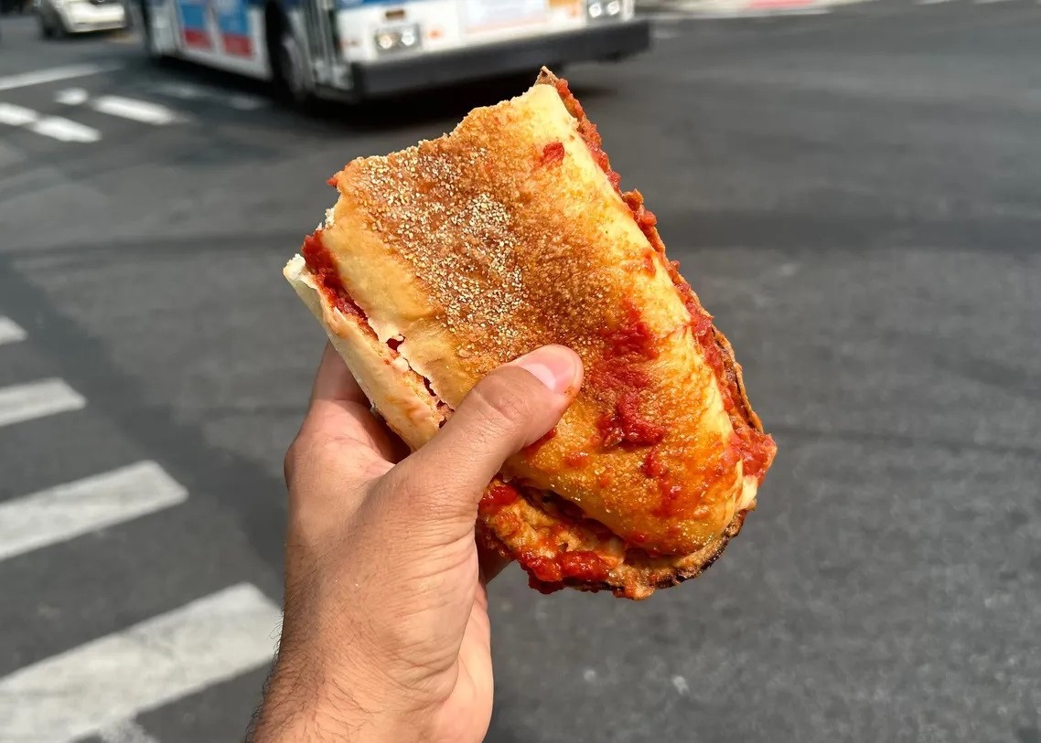The restaurant is a small takeout counter with a single table out front for seating. On the menu: affordable Italian heroes stacked with sliced eggplant, chicken cutlet, meatballs, and melted cheese. Sandwiches range in price from $8 to $11.