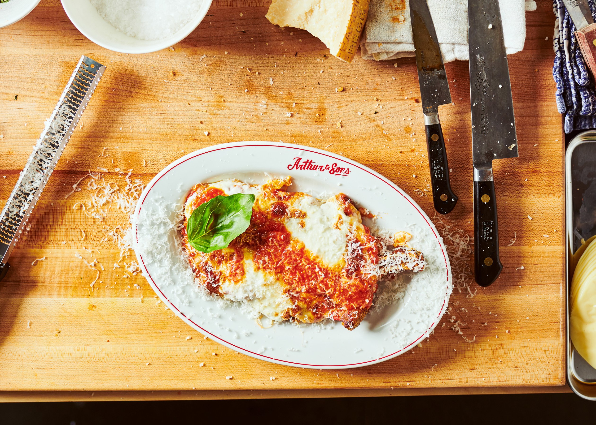 An homage in both menu and design to Chef Isidori's experience growing up in New York's restaurant business, Arthur & Sons transports guests back to the 1990s with "old school" Italian American red sauce classics and a space that speaks to his early influences. "My vision for the restaurant stems from my memories of being an Italian American kid in New York..."