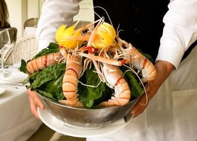 This big, beautiful Tudor house on Georgica Pond has seen many restaurant incarnations over the years: Sapore di Mare, Maya’s, Saracen, Georgica, Osteria Salinia. The interior is now creamy whites with wood and tile floors, several dining rooms, and a beautiful enclosed porch overlooking the pond. This room has superbly soundproofed windows. You would never know you are on the highway. There is now a wood-burning oven for pizzas, but this was not yet operational on our visit.