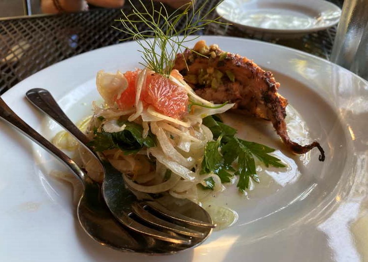 We’ve been starting with the grilled octopus when it’s on the menu, tender and served recently with a citrus salad, roasted asparagus topped with a fried egg and freshly grated cheese, or the simplicity of prosciutto and melon, a classic Italian pairing that we were recently reminded we should eat more often.
