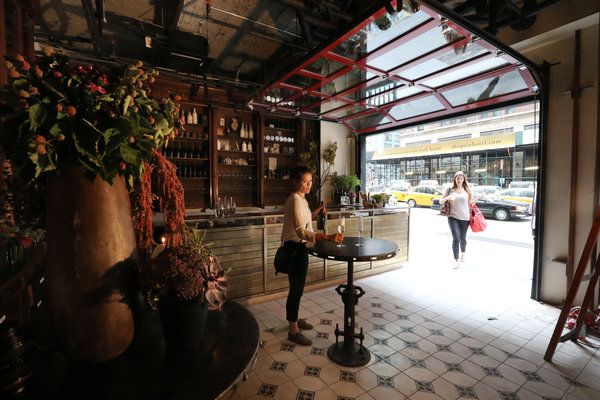 Will the newcomer eat the steakhouse for lunch? Michael Stillman, the president of Fourth Wall Restaurants, which owns both, says no. "We think they will complement each other," he said. The Standing Room, which opens to the street with an overhead garage door (right), will feature drinks, a menu of mini-sandwiches, some sweets and assorted house-made condiments like Calabrian chile salt, herb-infused honey, flavored pastas and biscotti.