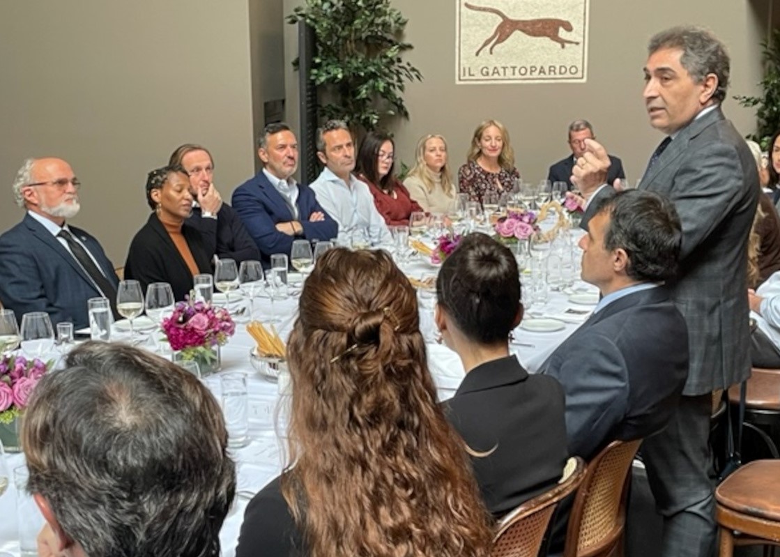 The luncheon took place on Monday, November 15 at Il Gattopardo, one of New York City’s finest, acclaimed Italian eateries. In attendance were the Italian Consul General in New York and industry leaders of the Italian food import sector. Il Gattopardo’s Chef, Vito Gnazzo, prepared a menu including organic fregula Sarda with asparagus tips with scallops and lightly breaded swordfish with caponata. Tradizione Import provided the wine pouring the Roero Arneis Daivej 2020 Del Tetto and Suber 2013 Daino.