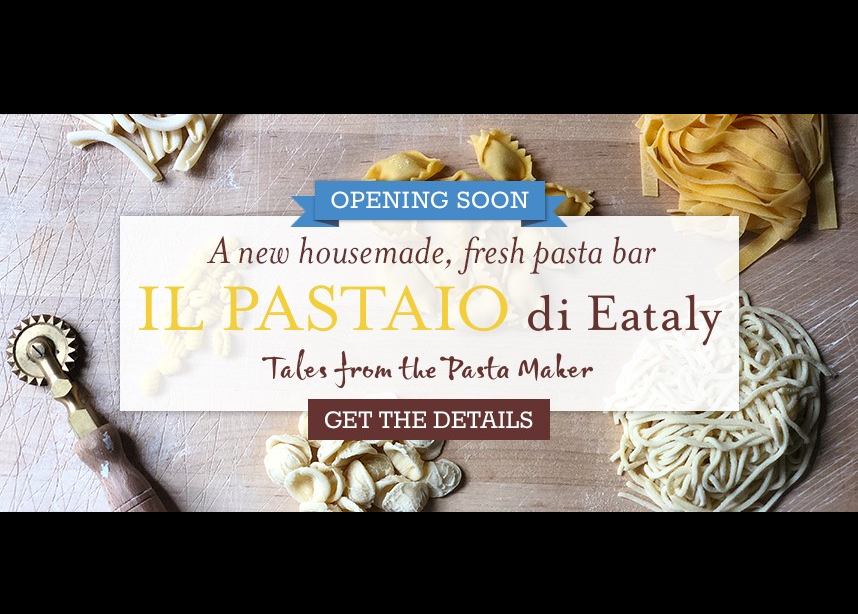 And because we believe that the more you know, the more you enjoy, we're also bringing the art of fresh pasta making to the table with La Pasta del Tavolo! Watch and learn from Eataly's featured pastaio as they knead, roll, cut, and shape a specialty pasta right in front of you at a table just behind the bar. In addition to at least nine different fresh pasta dishes paired with regional sauces, Il Pastaio's menu will feature small bites, housemade dessert (think: Tiramisù), and a unique selection of regional Italian wine and beer by the glass.