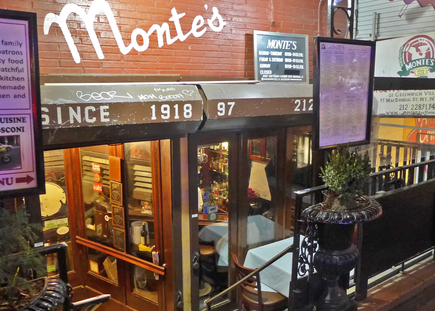 Even as far back as 1971 — the year Mamoun’s Falafel was founded — Malcolm Forbes referred to the street as the “Mardi-Gras bacchanalian swarm of MacDougal Street.”But in the midst of these blocks stands Monte’s Trattoria (97 MacDougal Street), a soot-covered townhouse obscured by neon signage (much like the more recent Carbone) and the busy balconied cafes around it.