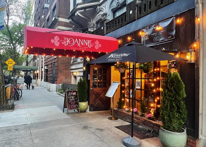 After leaving my apartment in Bushwick, Brooklyn, which was about an hour away from the restaurant, I arrived outside Joanne Trattoria. A chalkboard announced the restaurant's happy hour, which I thought implied that I wasn't necessarily in for a fine-dining experience, but rather a homey, family-owned-restaurant feel. I was excited to step through the doors.