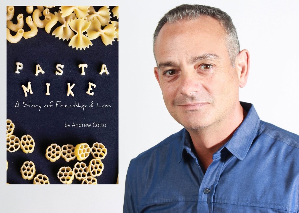 The book cover of “Pasta Mike: A Story of Friendship & Loss,” a novella by Andrew Cotto, is festooned with different types of pasta. It’s a fitting design for a book about a fierce friendship forged in family, pasta, and the type of familiarity that comes with knowing another person since childhood.