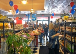 "I want to say thank you to our customers," said Vincent, fussing over trays of gourmet nibbles, complimentary to shoppers this day, as a nearby staffers bunned up Boars Head hot dogs with all the fixin's from a small cart. As his wife, Liz D'Antuono, cut birthday cake and laughed with revelers, Vincent patted a patron on the shoulder as he passed saying, "Ay, Goumba — how are ya?"