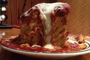 The lasagna is built from housemade pasta sheets. It is two and a half pounds, and costs $15.95, Galluzzi said. "People have been telling me it's the biggest in Buffalo," he said. "Most people can't even finish it." Galluzzi makes his own fettucine and linguine, sausage and meatballs.