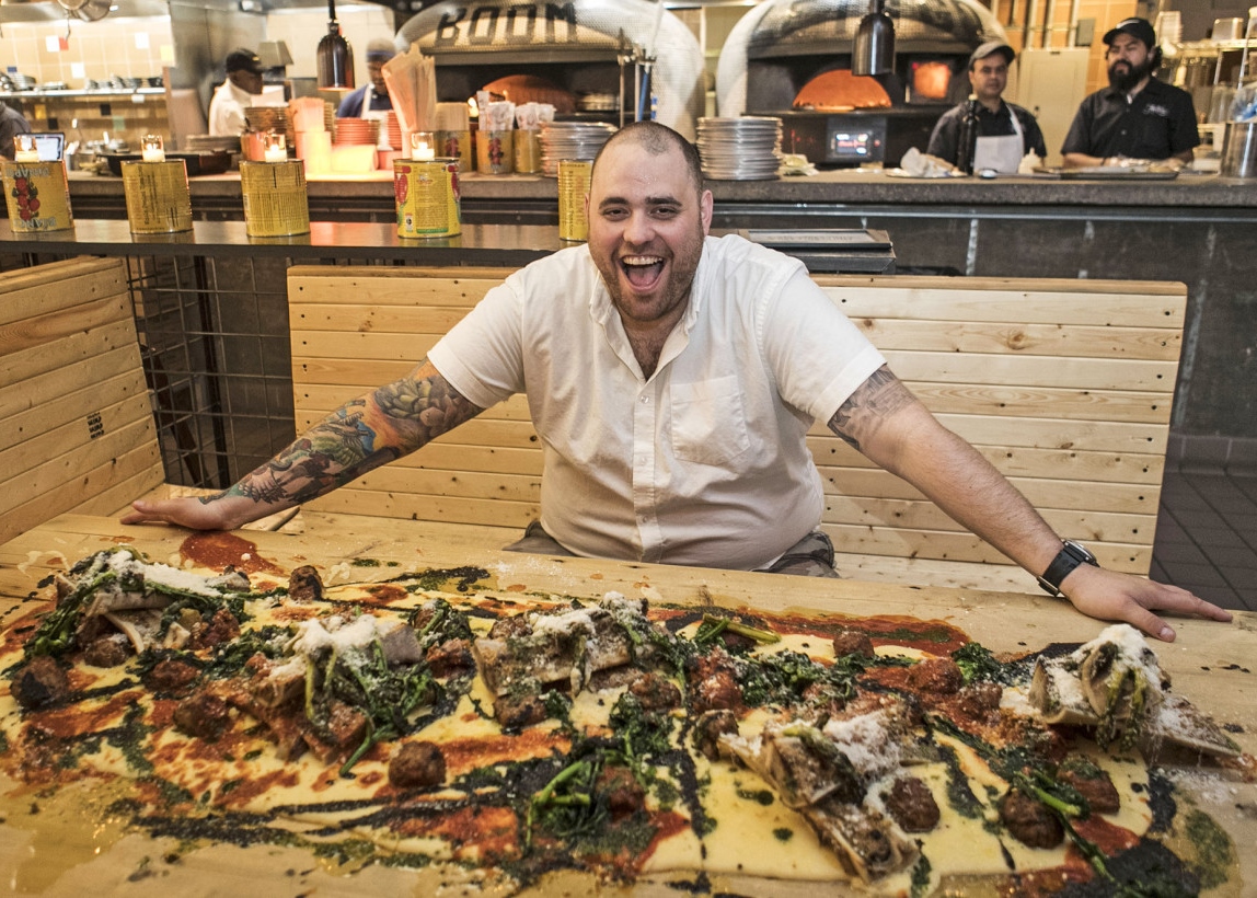 Next comes the wood-fired asparagus and broccolini, slow-roasted pork, meatballs and entire femurs full of goopy bone marrow. Each is plopped onto the polenta until the table looks like a giant, edible Jackson Pollock painting. That’s when patrons scoop the contents onto their plates, which have finally been brought out.