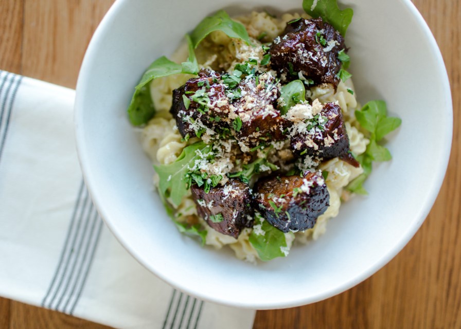 The restaurant, which is on the north side of the mall, near the former location of Restoration Hardware, is bright and airy, with pendant globe lighting, hand-painted murals, an open kitchen, a decent bar and a patio — and is large enough to allow everyone in your movie-going, back-to-school-shopping crowd something they’ll like, but not giant like the seemingly never-ending menu binder at the nearby Cheesecake Factory.