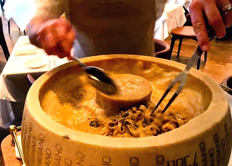 Dinner guests will know they’ve arrived at a place a bit more bona fide than Macaroni Grill upon receiving a "buona sera" greeting from a host facing a wine cellar stocked with nearly 300 Italian imports. Tables draped in white tablecloths line the Texas-sized formal dining room in an art-deco-inspired interior with geometric patterns and clean lines.