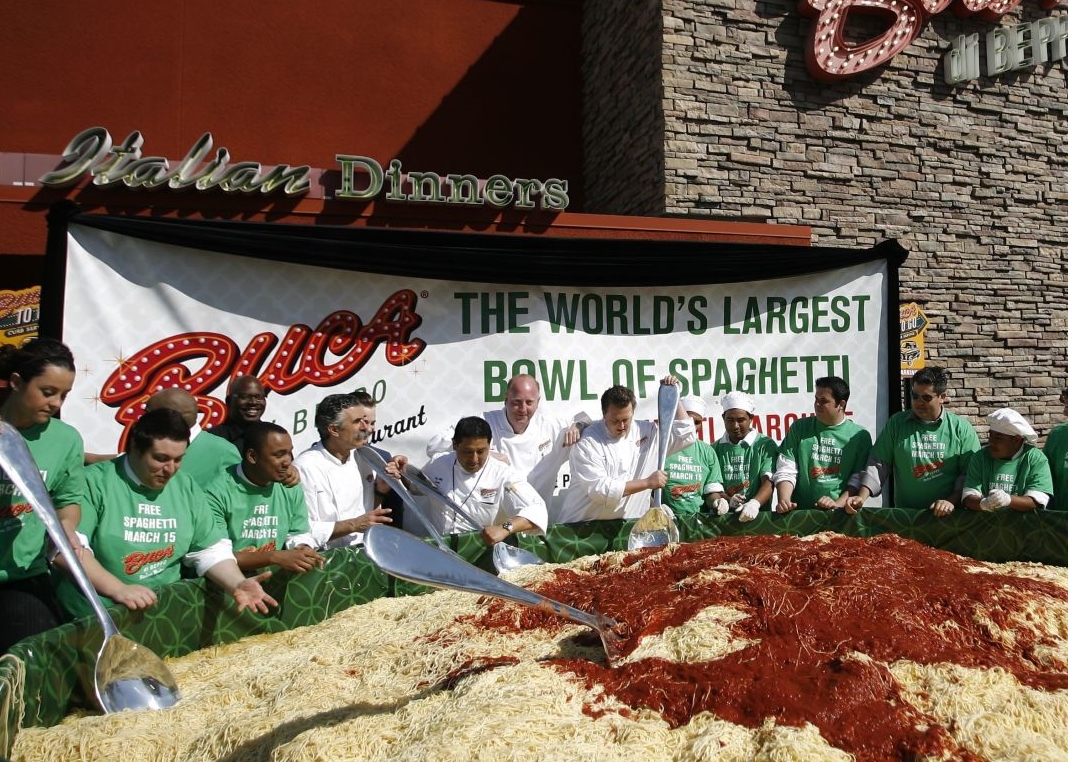 Piled high with 500lbs of spaghetti, 150 gallons of sauce and 50lbs of cheese, the world's biggest pasta bowl made its annual appearance for St. Joseph's Day celebrations. The whopping bowl of pasta, spanning eight feet in diameter, was more than enough to feed hungry New Orleans spectators on Friday.