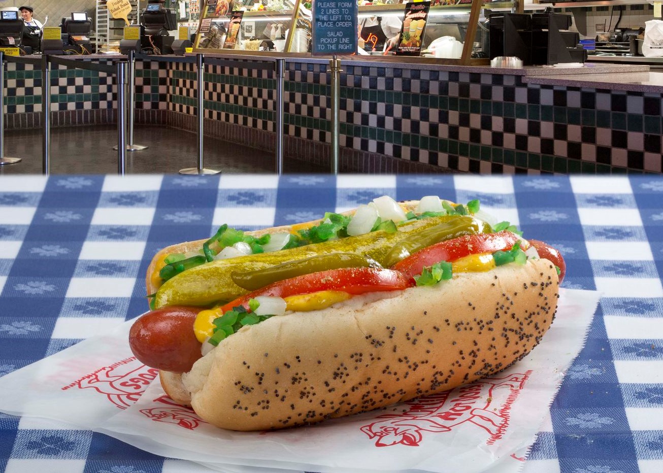 Since opening its first location in Illinois in 1963, Portillo’s has been a favorite of Chicagoans and tourists alike. Some of their signature items include the Italian beef sandwich, their charbroiled burgers and their Chicago-style hot dog, with mustard, relish, celery salt, chopped onions, sliced tomatoes, a pickle and peppers on a steamed poppy seed bun.