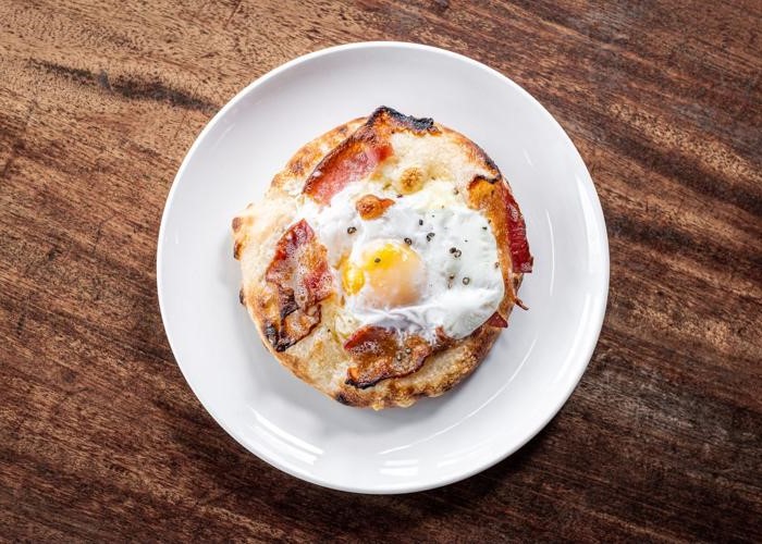 The space was designed by Graham Baba Architects, which used terracotta tiles, hand-baked glazed tiles, walnut bar tops, and white oak banquettes to complete the look, according to a recent release. Breakfast at Bombo Italian Kitchen specializes in savory Brizzas (i.e., 5-inch personal breakfast pizzas), though sweeter options — like Brizzas with toppings like Nutella, mascarpone, and berry jams — are available, too.