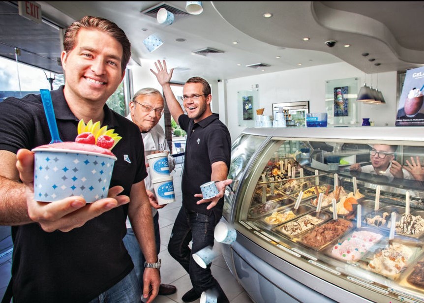 Both are entrepreneurs. Through the years they tried to make lots of entrepreneurial ideas take hold. As they described them, most of the ideas were “birdbrained.” The failures, though, fed their entrepreneurial spirits. After graduation from the UA, they each took a trip to Italy, and returned with, believe it or not, the same new entrepreneurial idea — gelato in Tucson. From that “aha” moment, Kaiserman and Ochoa founded Frost Gelato.