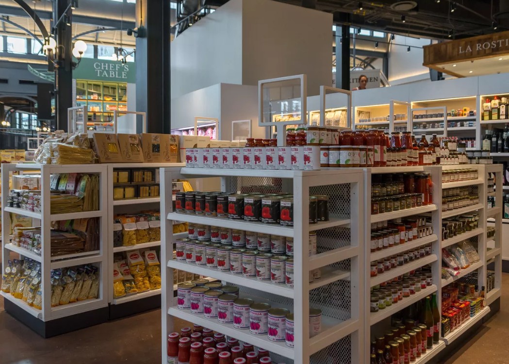 As customers approach the front of the Park MGM, the entrance to Eataly awaits with the market on the right and the restaurants and one bar on the left, all taking up 40,000 square feet on one level. The space on the right is dotted with small stands, offering a fishmonger, cheesemonger, butcher, Roman pizzas by the slice, desserts, breads, desserts, a chef’s kitchen, and more.