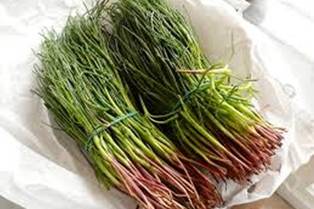 Agretti is a non-leafy green, also called Saltwort or Roscano, a little salty, and said to grow in Italy in two special places near saltwater. Since it thrives in our alkaline soil, its apparent scarcity in Italy must mean Italian soil is too acidic to grow it in home gardens. Asians use similar vegetables, all of them species of Salsola. The off-putting relationship is that it's related to Russian thistle (tumbleweed), which is edible when young.