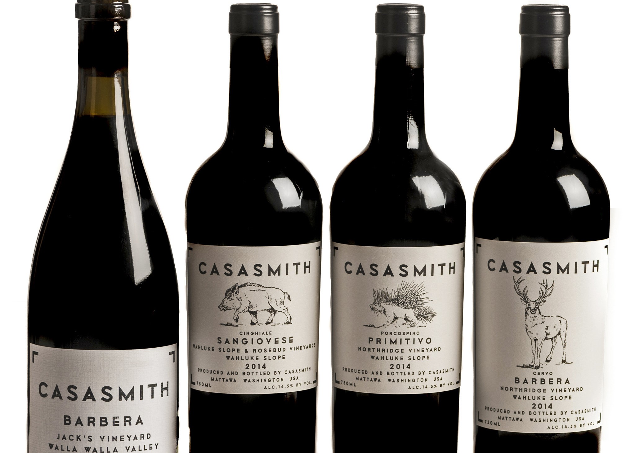 The 2016 Casasmith Cervo Barbera is produced using 100 percent Barbera grapes from the Northridge vineyard located on the Wahluke slope of Washington state. This delicious Italian variety wine is 100 percent whole berry fermented using native yeast and allowed to age on its lees for 12 months in oak tanks. Beautiful garnet red in the glass with aromas and flavors of lilac, mint, dark ripe fruit, followed by an earthy, spicy finish that is extremely balanced and lingering.