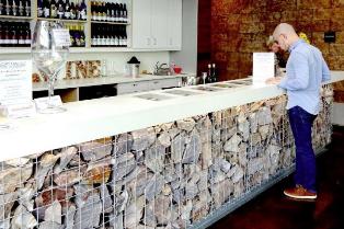 The airy, light-filled tasting room at the Northwest Wine Academy would feel right at home in any of Seattle's swankier neighborhoods. Designed with a distinctly northwest aesthetic, the walls are partially lined with beautiful reclaimed redwood and the tasting counter is faced with scores of basalt rocks brought back from eastern Washington. Large rollup glass doors let in plenty of light, even on gray Northwest days.