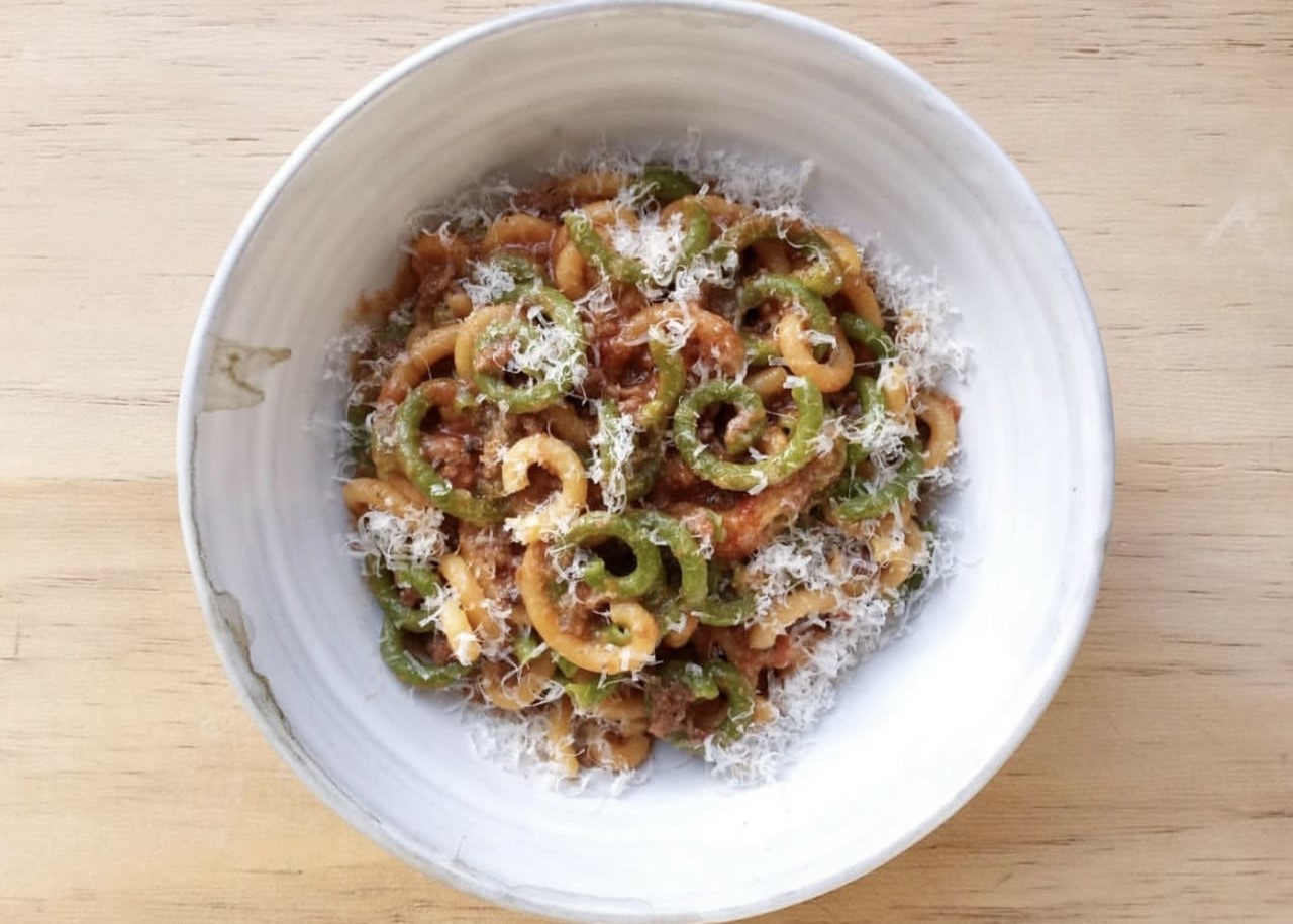 Forget mixers and pasta rollers, even the old-school hand-crank type. Inspired by the pasta cookbook American Sfoglino, which he refers to as “an homage to mostly the women in Bologna who are professional pasta makers,” Dopson makes all his pasta by hand from start to finish. That means mixing and kneading the dough by hand, then rolling it out with a rolling pin like the Italian grandmas of yesteryear.