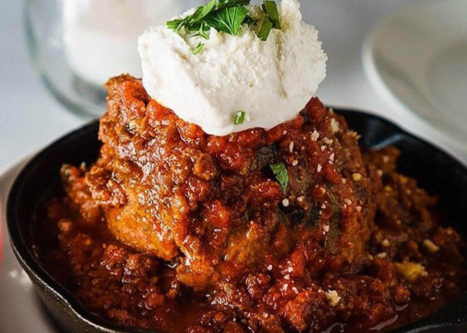 To start off any meal, it’s wise to order the restaurant’s star appetizer dish, “The Meatball.” This gigantic sphere is made with 16 ounces of fresh-ground Imperial wagyu, Italian sausage and veal, and is served with fresh-whipped ricotta. Also, not-to-be-missed appetizers include the popular charred octopus, crispy fried calamari and a creamy, spicy lobster bisque.