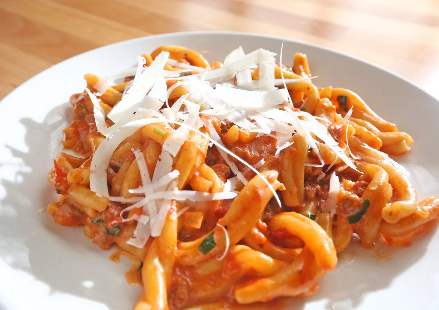 Pastina with butter and cheese was a childhood favorite of mine. The noodles are just a bit larger than couscous. My mother would boil and drain them, holding back a little of the starchy water, then stir in butter and a good amount of grated Parmesan cheese. Any kind of pasta with butter and cheese still ranks high on my list of preferred comfort foods, but I never thought to put a poached egg in it, as they do with the cavatelli at Raccolto.