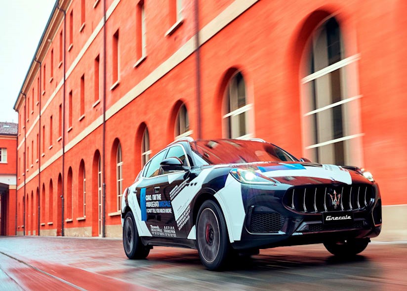 The prototype depicted in the images wears a black and white wrap that previews some of the Grecale's specifications and features, like the amount of storage space and leg room available in the cabin.
