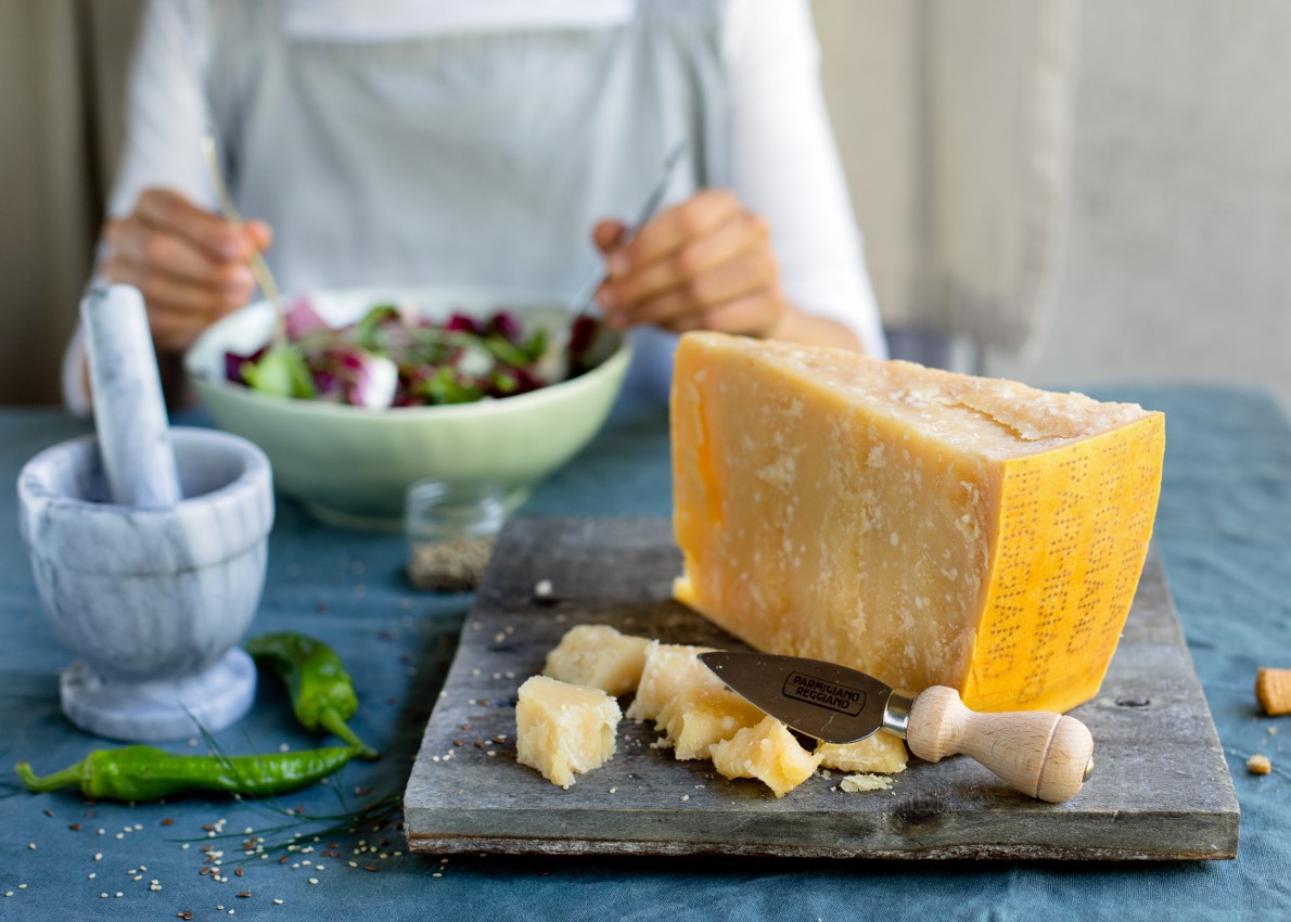 The minimum maturing period for Parmigiano Reggiano PDO cheese is 12 months (the longest minimum maturing period of all PDO cheeses), but there is no maximum maturing period imposed by the production regulations. Friable, extremely soluble and with a strong personality, 40 months Parmigiano Reggiano is appreciated and used by chefs all over the world as an ingredient to give a touch of “umami” to all dishes.