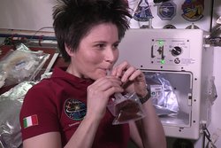 Video recorded aboard the space station showed Cristoforetti and NASA astronaut Scott Kelly enjoying their morning jolt of caffeine. The astronauts planned to drink espresso from 3D-printed coffee cups aboard the space station specially designed to keep the coffee from floating out in the absence of gravity.