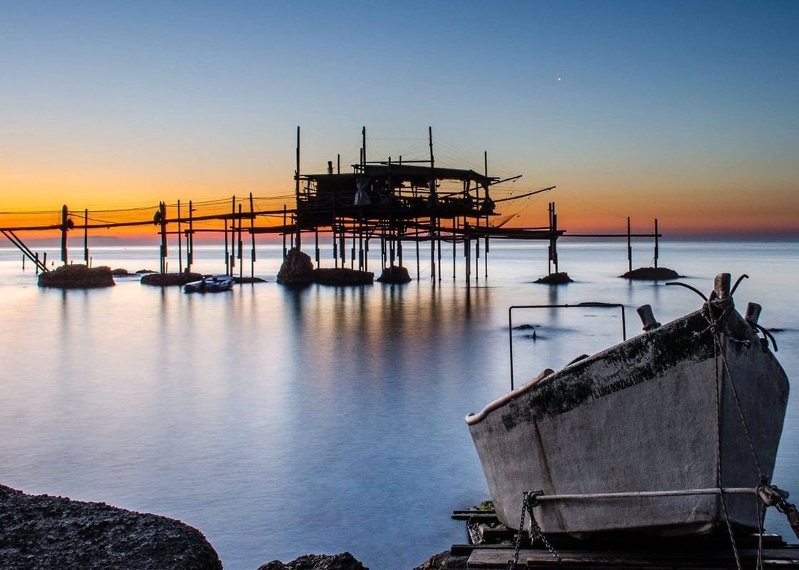A trabocco is a kind of shack on a pier that juts out from the beach into the waters of the Adriatic on the coast of Italy’s Abruzzo region. Festooned with poles and nets, it’s a machine for catching fish; an ancient technology said to be developed by the Phoenicians.