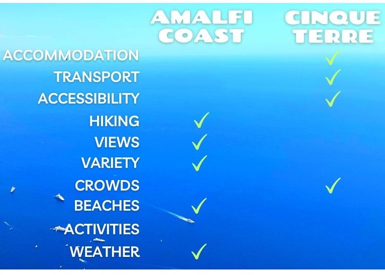 Exploring coastal Italian villages is a must-do for a first-time traveler to Italy. Your destination of choice will often come down to either Cinque Terre in the north or the Amalfi Coast in the south.