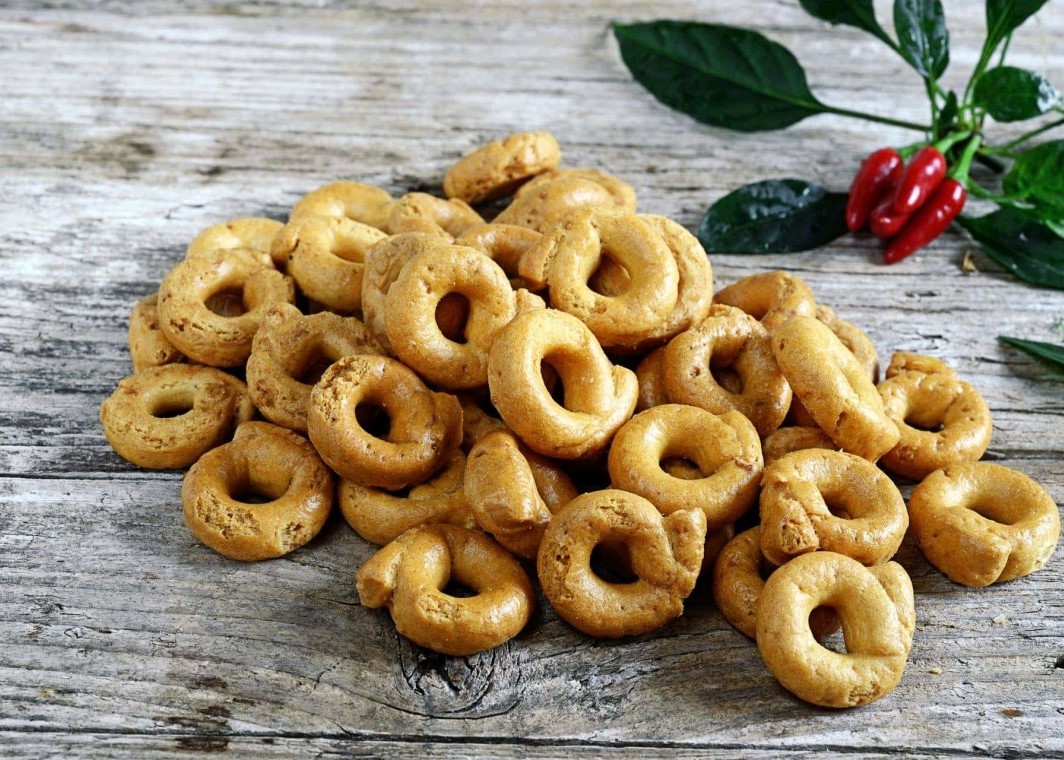 Taralli are an unmissable food on the Apulian tables. It is a baked product with an unmistakable ring shape to be enjoyed at any time of the day. They are an excellent aperitif when accompanied by a glass of local red wine or a delicious snack for a break. They can be eaten alone (very carefully because they are "uno tira l’altro: one pulls the other") or combined with olives, meats and cheeses. But how is this inviting food born?